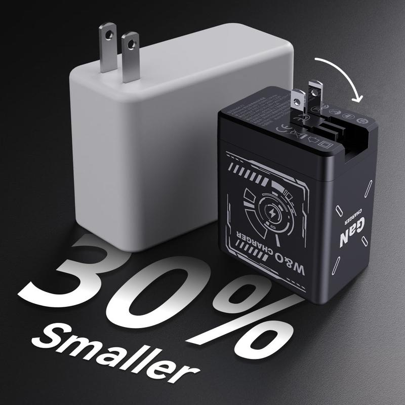 Power up anywhere with a 80 W fast charger featuring a retractable cable, dual ports, and compact, travel-ready design. no hassle!