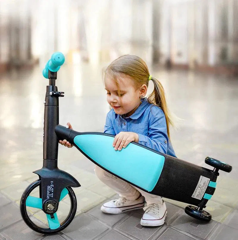 The bike seat can be rotated 360 degrees by pressing the button on it until it turns into a scooter
