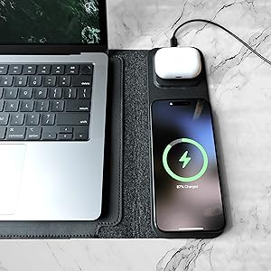 This laptop sleeve with wireless and MagSafe charging allows you to charge one or both of your devices at the same time! Use your laptop or wall outlet to get power with less mess.