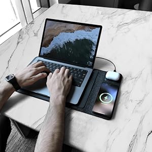 A perfect desktop mat and work station for your laptop. Charge your devices, protect your laptop, and store your small items.