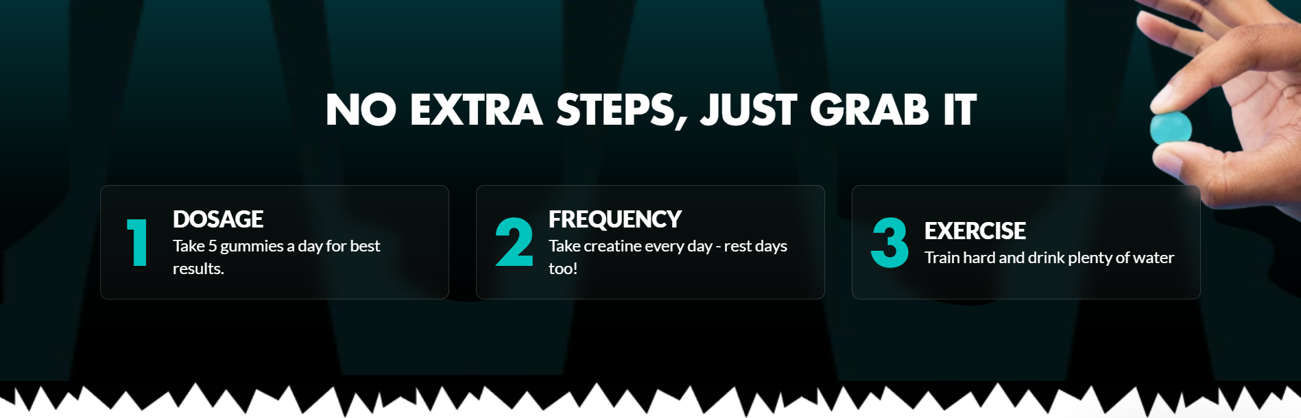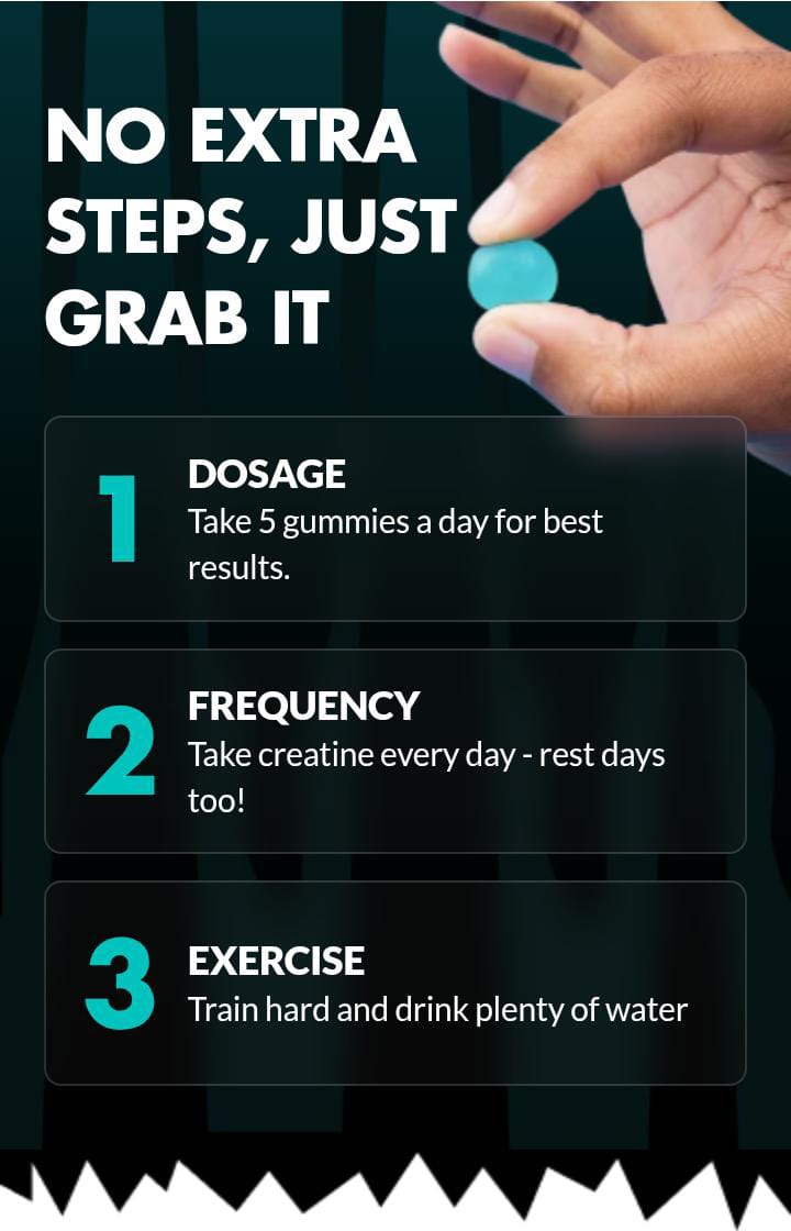 We recommend 2–3 gummies daily, which provides the optimal amount of creatine for strength and performance.