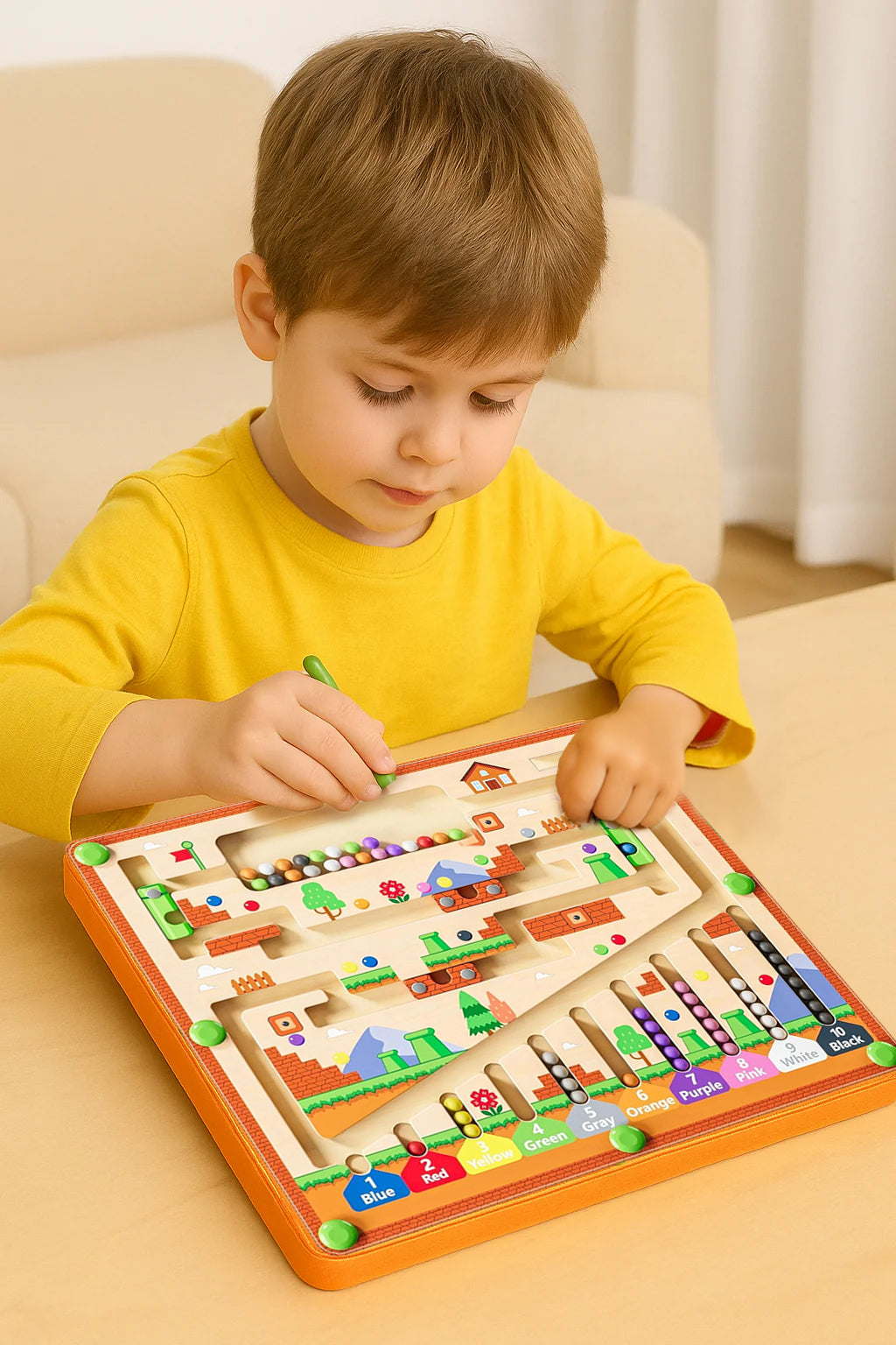 Struggling with short attention spans, screen dependency, or delayed motor skills? These aren’t just phases—they’re signs your child needs more meaningful, hands-on play. Our interactive magnetic board is designed to support early cognitive growth. It starts by engaging young minds with color and number recognition, then builds hand-eye coordination through guided movement. Finally, it nurtures focus, patience, and independent problem-solving—all in a screen-free, safe, and joyful way.