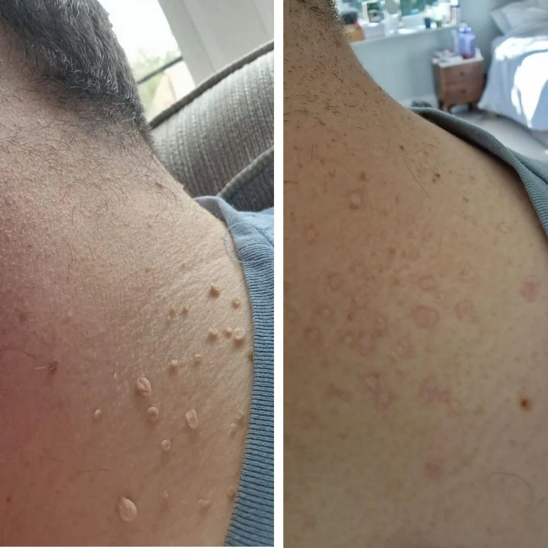 Calming and healing in progress—skin tags shrinking, redness fading.