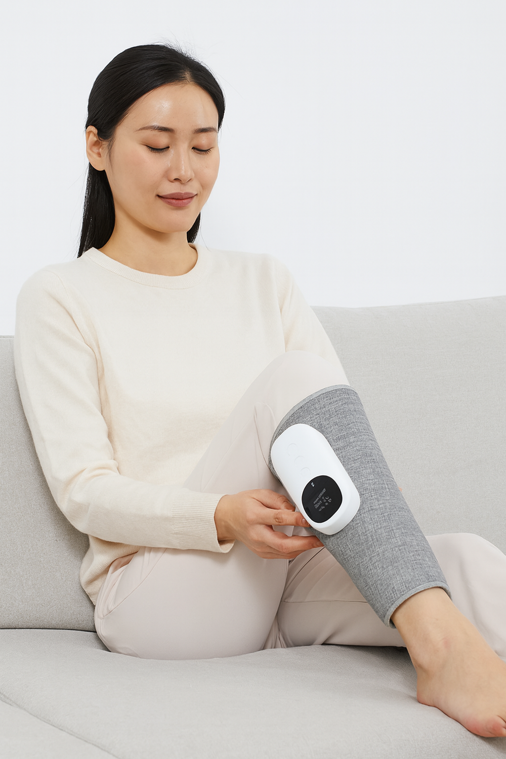 It uses air compression technology to gently squeeze and release, simulating a professional massage for better circulation and relaxation.