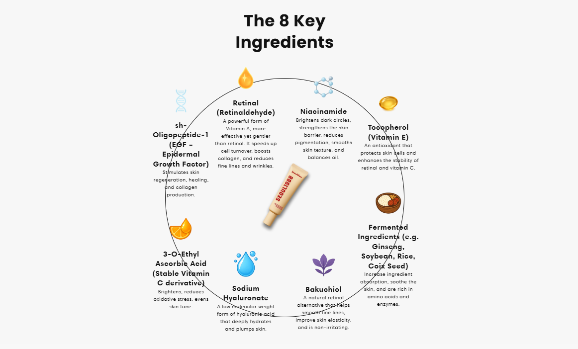 This product contains retinal encapsulated in liposomes, which improves stability and penetration. “4% retinal liposome” typically equals about 0.04% pure retinal—a gentle but effective dose for beginners